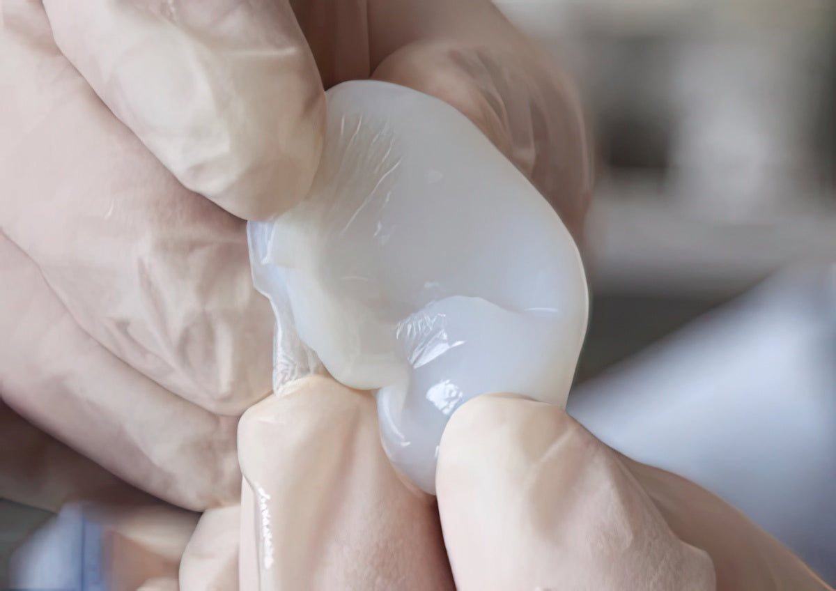 They injected the mold with collagen derived from rat tails, and then added 250 million cartilage cells from the ears of cows. The high-density gel has a consistency that is similar to Jell-O when the mold is removed. The collagen serves as a scaffold upon which cartilage can grow.