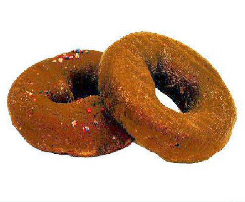 Not One . . . But Two Mouth Watering Chocolate Glazed Duncan Donuts! Two mouth watering donuts molded directly from two fresh Duncan donuts complete with a yummy (faux) translucent sugar frosting. We captured all the detail . . . the taste is left up to your imagination. I can tell you they are gooood as truth be told there were actually three donuts when we started and I ate one of them. The sheen of sugar glaze icing is made to fool the closet scrutiny. Only the lack of aroma will give it away. And . . . if you are thinking about a Trans fat diet what could be a better substitute than the look without the calories. They will last forever as we cast them with a plastic polyurethane resin in our studio.